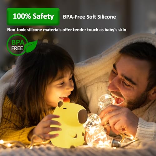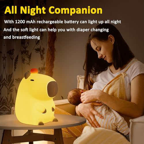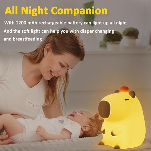 OkiyiD - مصباح كابيبارا ليلي للاطفال، مصباح كابيبارا للحضانة، تحكم باللمس، محمول وقابل لاعادة الشحن، قابل للتعتيم، هدايا عيد الحب واعياد الميلاد للاولاد والبنات (كابيبارا مع برتقالي)