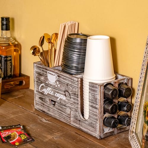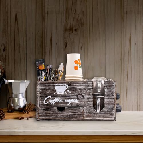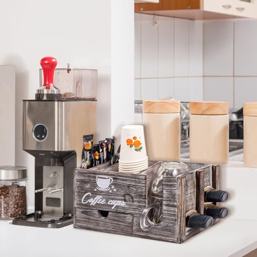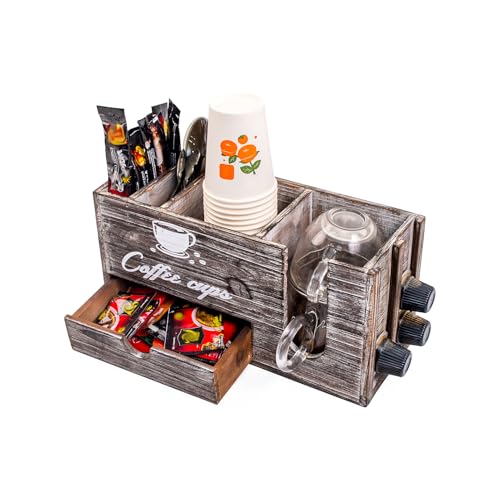 OKSQW - منظم ركن القهوة بتصميم ريفي، صندوق أكسسوارات خشبي لطاولة المزرعة والشاي والبهارات، سلة تخزين الشاي والتوابل وكبسولات القهوة والأكياس والأكواب والشراب من او كيه اس كيو دبليو