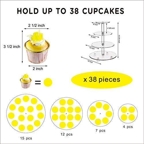 OLACHIKKO - حامل كب كيك دائري من 4 طبقات من اولاتشيكو، مع شريط إضاءة ليد، برج عرض الكب كيك من الاكريليك - حامل حلويات - لحفلات الزفاف وأعياد الميلاد (ضوء أصفر)