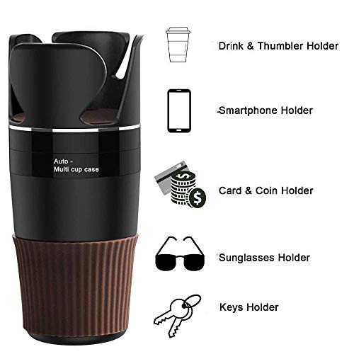Olands - حامل أكواب السيارة، منظم أكواب السيارة، منظم وحدة التحكم في السيارة، مشبك على حامل الأكواب، منظم للمقعد الخلفي للسيارة، حامل أكواب تلقائي، أسود وبني