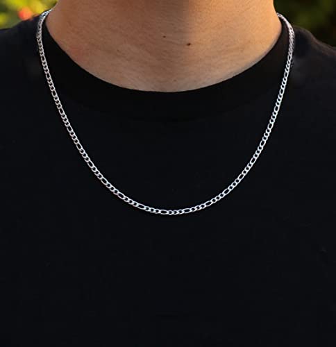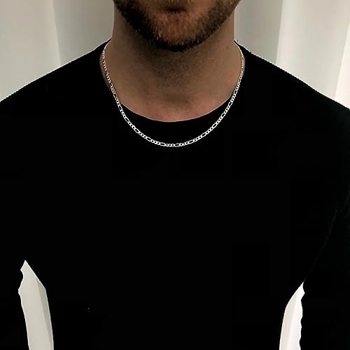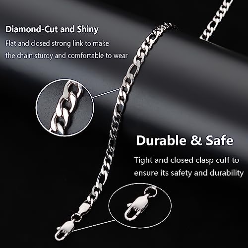 OLARCU - سلسلة فيجارو للرجال من الستانلس ستيل 5 ملم مطلية بالروديوم مجوهرات فضية اللون والاولاد 24 انش ستانلس بدون احجار كريمة