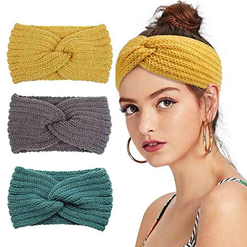Olbye - اربطة للرأس من اولبي كروشيه منسوج وملفوف من القطن، طوق رأس منسوج من القطن، رباط رأس للتدفئة في الشتاء، وشاح رأس مضفر للنساء والفتيات، 3 قطع.