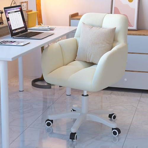 oldlaiben - كرسي مكتب بعجلات للمكتب المنزلي فانيتي للمكياج مع مساند للذراعين والظهر كمبيوتر دوار بارتفاع قابل للتعديل للمساحات الصغيرة وغرفة المعيشة الملابس ابيض معدن