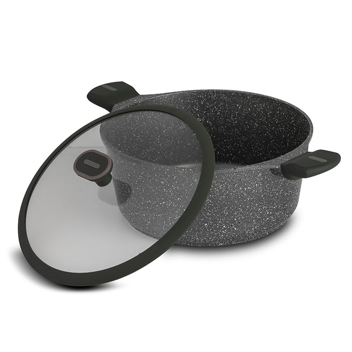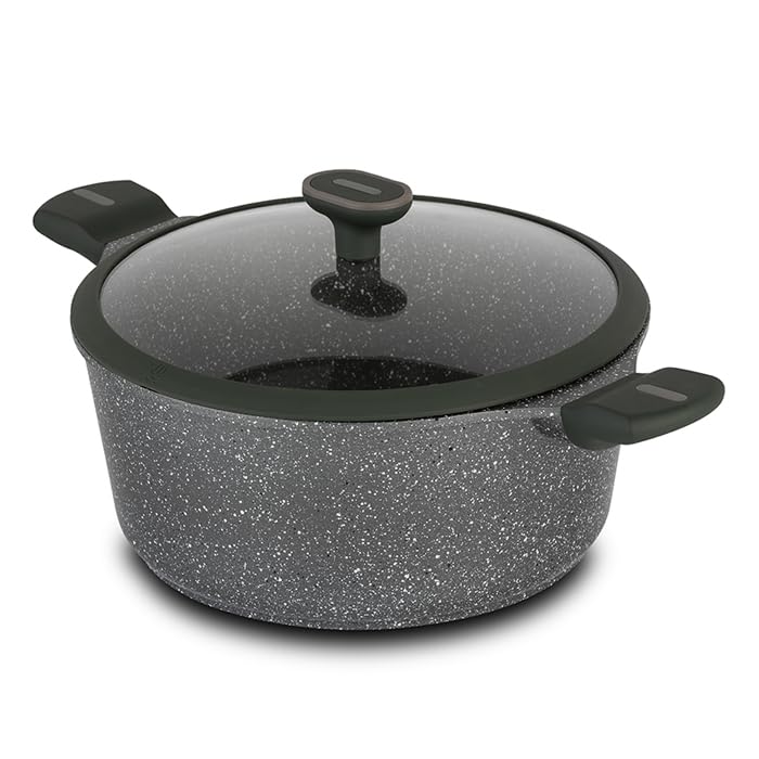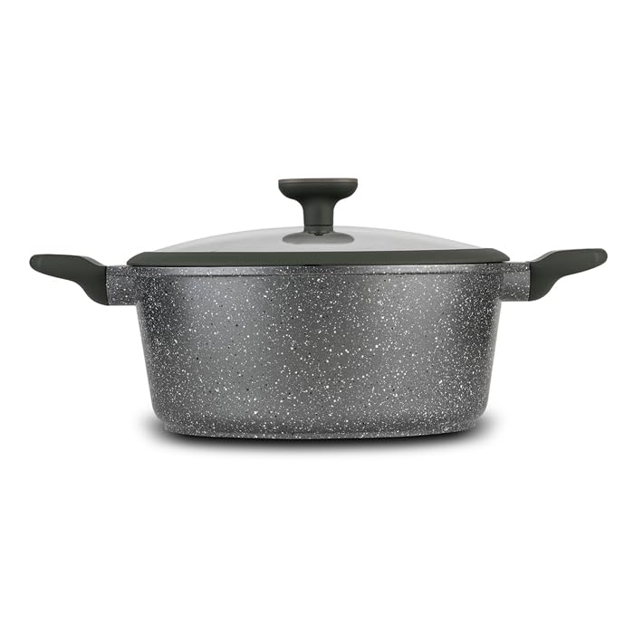 NAVA - كسرولة من الالومنيوم المصبوب بغطاء وطلاء حجري مانع للالتصاق من اوليا، مقاس 28 سم