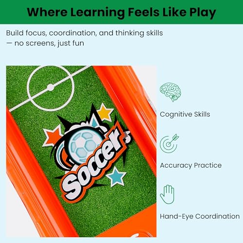 - الأبعاد: حجم مثالي للعب على سطح المكتب مع قاعدة حمراء ملونة ولمسات بلون أزرق مخضر، مما يخلق جاذبية بصرية جذابة للاعبين الصغار
