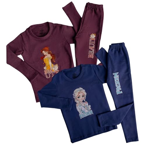 Generic - 2 طقم دفاية للبنات من Olive - قطن ليكرا مبطن داخليًا بطبعات جميلة - ملابس شتوية منزلية للبنات