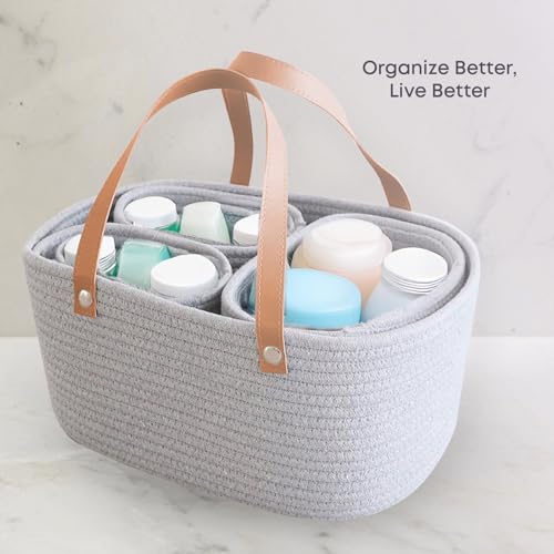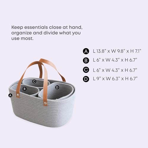 Oliver & Emilia - سلة من الحبال القطنية مع ثلاث بطانات قابلة للازالة ومقبض جلدي من اوليفر اند اميليا - رمادي