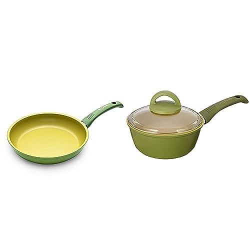 Olivilla Organic - طقم من اوليفيلا اورجانيك به طاسة قلي 24 سم - لون اخضر زيتوني + كسرولة 16 + غطاء بايركس ألومنيوم