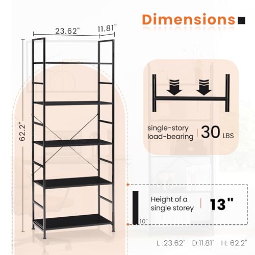 - تصميم واسع: يوفر رف الكتب المكون من 5 طبقات مساحة تخزين واسعة للأقراص المدمجة والأفلام والكتب وغيرها من الأشياء. يمكن لكل طبقة من رف الكتب استيعاب مجموعة متنوعة من العناصر بسهولة لا مثيل لها. يزيد تصميم خزانة الكتب الطويل من المساحة العمودية، مما يوفر لك حل تخزين شامل دون التنازل عن مساحة معيشتك.
