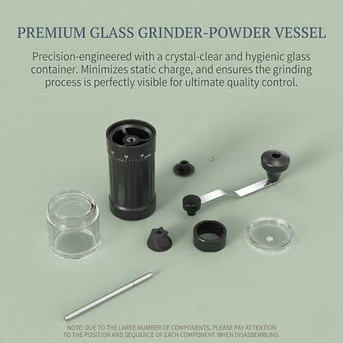 - [تصميم قابل للفصل وسهل التنظيف] - تتميز المطحنة اليدوية الخاصة بنا بتصميم ذكي قابل للفصل مع ثلاثة أجزاء رئيسية فقط (بما في ذلك الغطاء) لسهولة التجميع والتفكيك والتنظيف الخالي من المتاعب. للحصول على أفضل صيانة، تجنب استخدام الماء، لأن الرطوبة يمكن أن تؤثر على نكهة قهوتك. بدلاً من ذلك، استخدم الفرشاة المرفقة أو قطعة قماش جافة للحفاظ على المطحنة في أفضل حالة، مما يضمن تحضيرًا طازجًا في كل مرة.