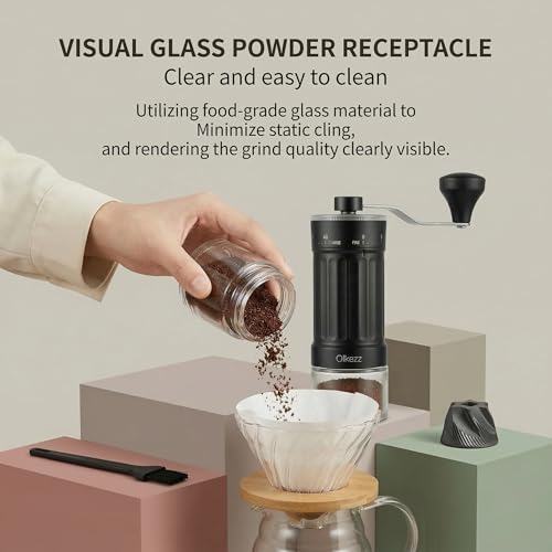 olkezz - مطحنة قهوة يدوية خارجية قابلة للتعديل ، مع طاحونة مخروطية معاصرة من السيراميك عالية الدقة، إعدادات قابلة للتعديل بـ 40 درجة طحن، مناسبة لأنواع للأيروبرس، الإسبرسو، القهوة التي يتم تحضيرها بالتنقيط