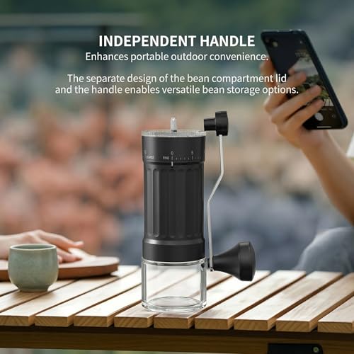 - [تصميم صغير ومحمول للقهوة أثناء التنقل] - تزن 325 جم فقط مع حجم أنيق وموفر للمساحة يبلغ 17.0 × 5.8 × 18.8 سم، مطحنة القهوة اليدوية هذه هي رفيقك المثالي للسفر. سواء كنت تخيم أو في رحلة على الطريق أو في المكتب أو تسترخي في الفناء، استمتع بالقهوة المطحونة الطازجة في أي وقت وفي أي مكان. سهلة الحمل والاستخدام - تتضمن دليل مستخدم لإعداد خالٍ من المتاعب وتجربة طحن سلسة وممتعة أينما كنت.