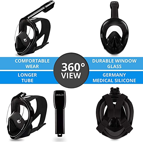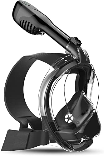Olpad - قناع غوص حر لكامل الوجه برؤية عريضة بدوران 180 درجة، مضاد للتسرب وتكاثف البخار، قابل للحمل، جاف بالكامل، يتيح التنفس بحرية (لون أسود، مقاس لارج-اكس لارج) من أولباد