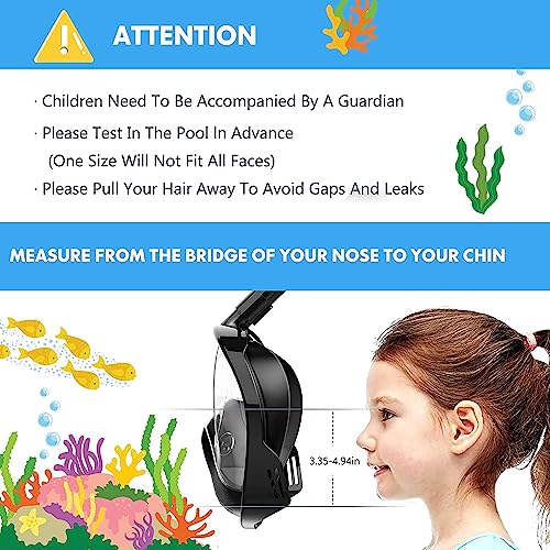 - قناع غوص لكامل الوجه - تصميم كامل للوجه بزاوية 180 درجة للتنفس بشكل مريح تحت الماء إما بالفم أو الأنف أثناء الغطس.