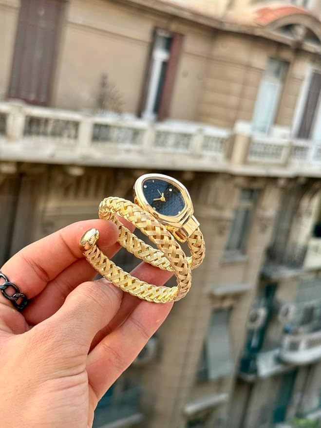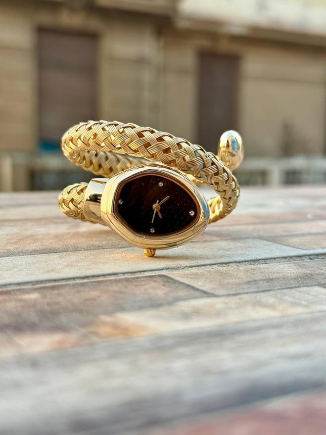 Generic - ساعة ثعبان اوه ام بهيكل معدني ذهبي وخلفية سوداء للنساء
