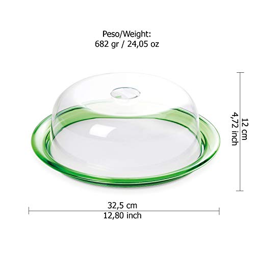 Omada - طبق زجاج بغطاء للكيك جلوبو من اومادا، 32.5 سم - اخضر، مستدير