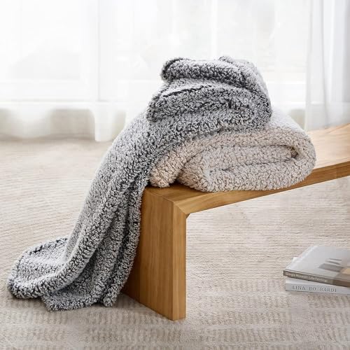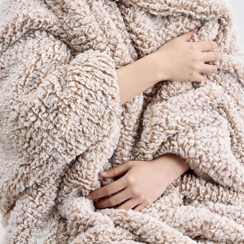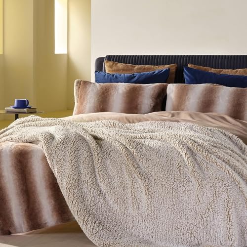 Moro Moro 3 - بطانية من الصوف المتدرج - بطانية كوين فائقة النعومة والزغبية للسرير، بطانية دافئة خفيفة الوزن لجميع الفصول، بلونين بيج متدرج (مقاس كوين، 225 × 225 سم، من مورو مورو