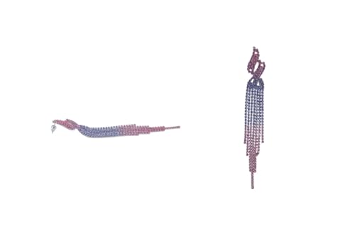 Generic - اقراط متدلية مزينة بشراشيب من حجر الراين للنساء - بينك وازرق