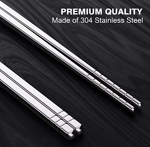- [جودة ممتازة] - مجموعة عيدان الطعام المعدنية مصنوعة من الفولاذ المقاوم للصدأ 304 الممتاز مع لمسة نهائية مصقولة بدقة لمنع الصدأ وارتفاع درجة الحرارة. إنها متينة للغاية وسهلة الحمل.