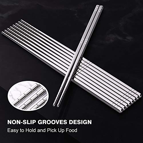 Omia - عيدان طعام معدنية قابلة لإعادة الاستخدام من الفولاذ المقاوم للصدأ آمنة للاستخدام في غسالة الأطباق وخفيفة الوزن ومضادة للانزلاق من اوميا، مكونة من 5 أزواج