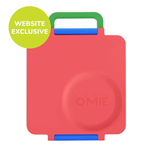 Omie - لانش بوكس بينتو معزول مع برطمان طعام حراري مانع للتسرب بـ 3 أقسام ومنطقتين للطعام الساخن والبارد للأطفال من اومي - (أحمر) (مفرد) (قد تختلف الألوان)