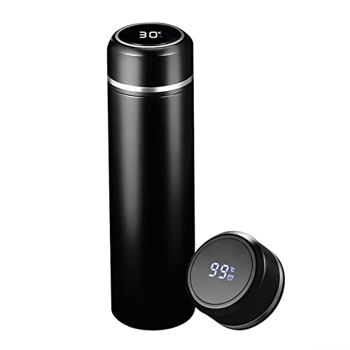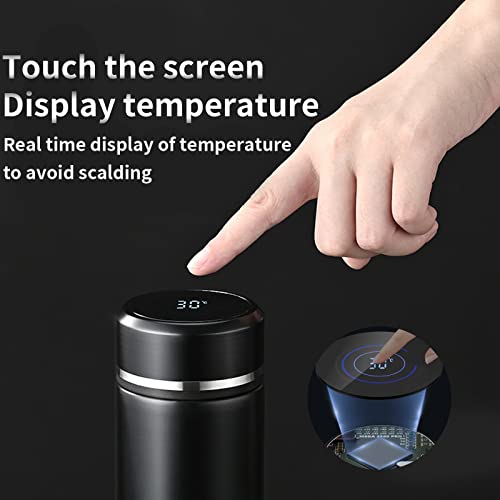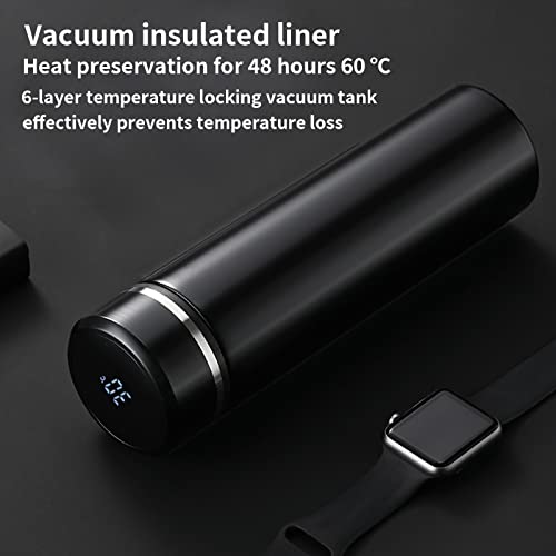 OMIRA - كوب ترمس حراري من فولاذ مقاوم للصدأ 316 اوميرا 500 مل ذكي بشاشة ليد لعرض درجة الحرارة زجاجة مياه معزولة مع شاشة تعمل باللمس مانعة للتسرب تحافظ على الدفء أو البرودة لمدة 12-24 ساعة أسود