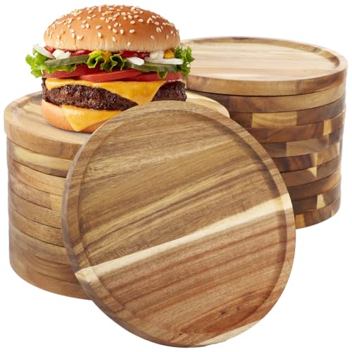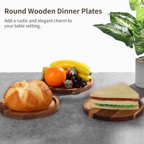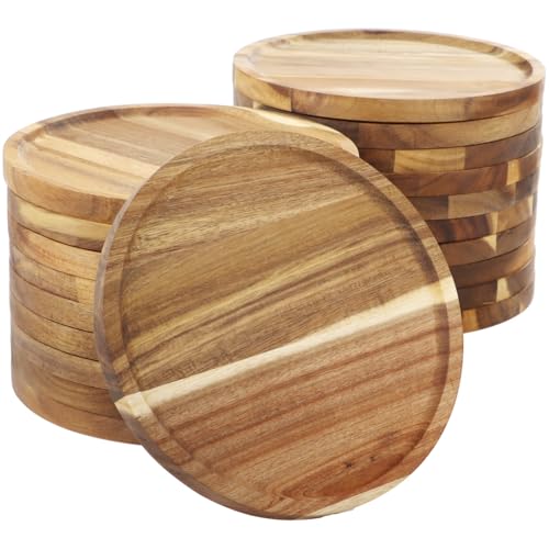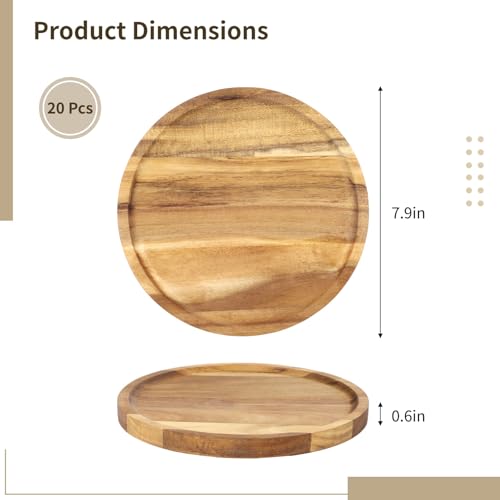 OMISTAR - مجموعة من 20 طبق خشب الاكاسيا اطباق عشاء خشبية مستديرة 8 انش صواني تقديم الطعام الطبيعية شحن غير قابلة للكسر حلوى لتقديم في المنزل وحفلات العشاء