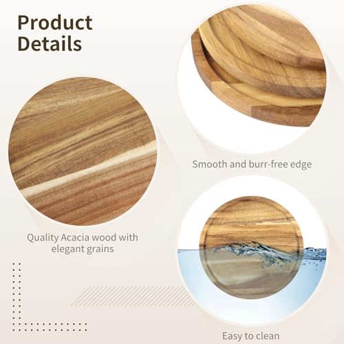 - 【هيكل من خشب الأكاسيا الموثوق】مصنوعة من خشب الأكاسيا عالي الجودة، أطباق العشاء المستديرة هذه آمنة غذائيًا وغير سامة. توفر لمسة نهائية ناعمة ومصقولة تمنحك شعورًا رقيقًا عند اللمس. يمكن للهيكل المتين أن يتحمل الاستخدام المتكرر دون أن يتشقق أو يبهت بسهولة.
