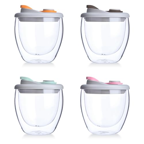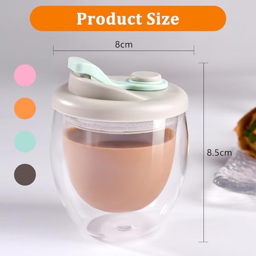 OMJMYY - 4 اكواب زجاجية مزدوجة الجدران سعة 250 مل من اومجمي قهوة للكابتشينو واللاتيه والشاي مع اغطية زجاج البوروسيليكات المقاوم للحرارة للقهوة والحليب والعصير