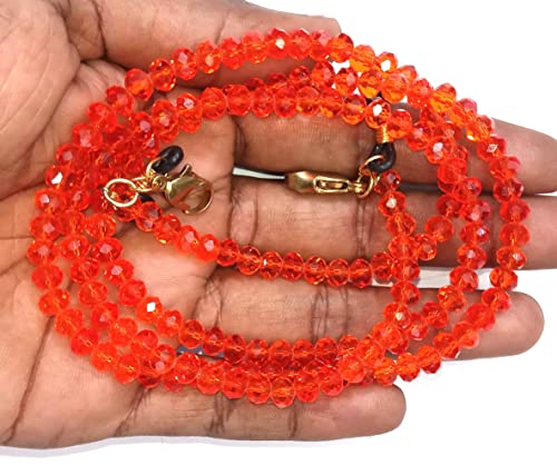 OMX - قطعة واحدة من حامل الخرز / حامل سلسلة نظارات العين حول القلادة، حبل سلسلة نظارات للنظارات والقناع، مقاس 74 سم، خرز زجاجي 6 ملم اللون - احمر، احمر