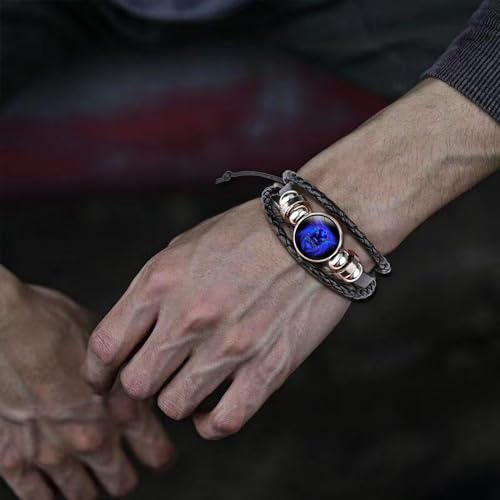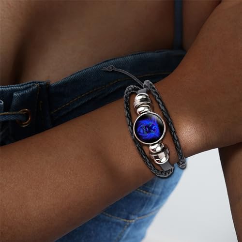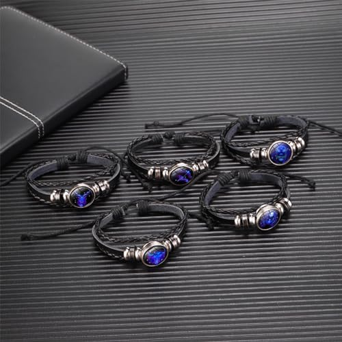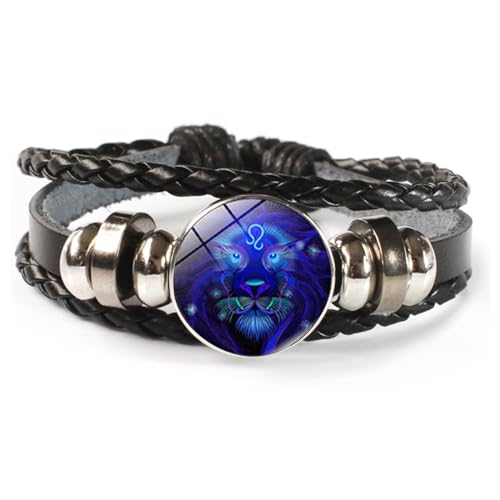 ONBRIG - اساور زودياك للرجال من اونبريج، 12 كوكبة جارديان، سوار جلد اسود قابل للتعديل للنساء، سوار بتصميم علامة زودياك، هدايا مجوهرات عيد الميلاد للنساء والرجال، مجوهرات الكريسماس (ليو)