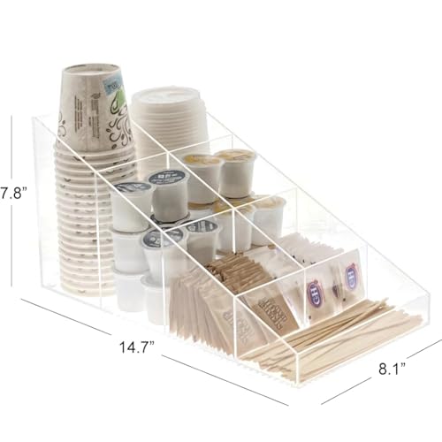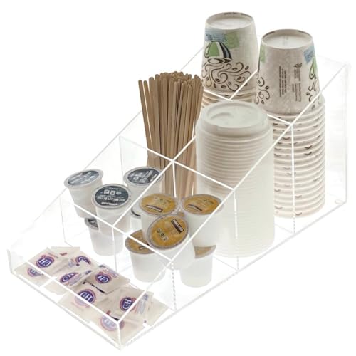 OnDisplay - منظم قهوة من على ديسبلاي، بتصميم عصري، شفاف، مصنوع من الأكريليك، مقسم إلى أقسام متعددة، لتنظيم الأكواب والأغطية والسكر