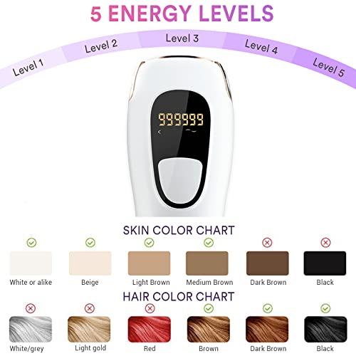 - 【999,999 ومضة للاستخدام مدى الحياة】جهاز إزالة الشعر بالنبض الضوئي له أقصى عمر فلاش يصل إلى 999,999 ومضة. يمكن استخدامه مدى الحياة على الجسم بالكامل دون الحاجة إلى شراء معدات أخرى لإزالة الشعر. سيتم عرض العدد المتبقي من الفلاش بوضوح على شاشة LCD، مما يسمح لك بمعرفة العدد المتبقي من الفلاش في أي وقت.