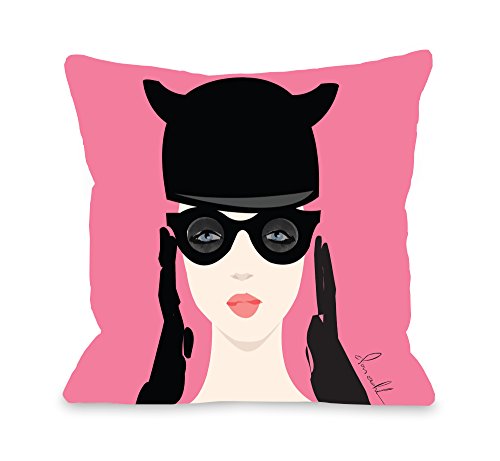 One Bella Casa - وسادة بتصميم فتاة الخفافيش من دون اوهل، 18 انش × 18 انش، زهري/اسود، بوليستر