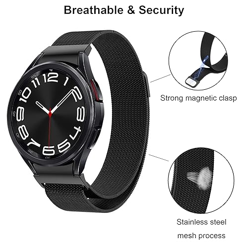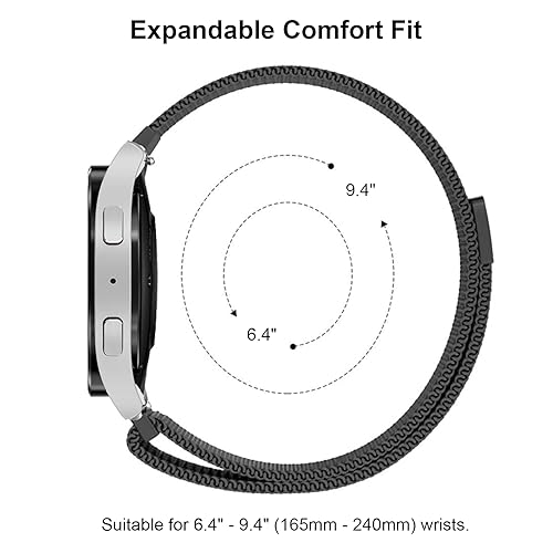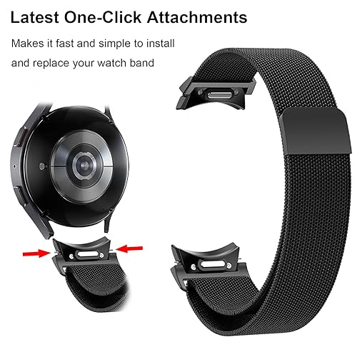 BandRain - سوار معدن بإبزيم مغناطيسي من الستانلس ستيل-تركيب وخلع بضغطة واحدة بلا فراغات، لساعة سامسونج جالاكسي 4 5 6 7 FE مقاس 40-44 ملم/جالاكسي 6 كلاسيك 47-43 ملم/5 برو 45 ملم/4 كلاسيك 42-46 ملم