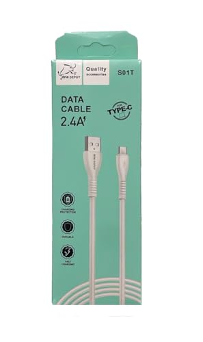 Generic - One Depot كابل بيانات Type-C، 2.4 أمبير، حماية الشحن، متين، شحن سريع، أبيض، S01T