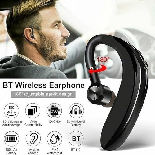 Generic - سماعة رأس بلوتوث على الأذن بتصميم مناسب للأذن قابلة للتعديل بزاوية 180 ° بوقت تحدث 20 ساعة مع شاشة مستوى البطارية وشحن مايكرو USB بلون أسود