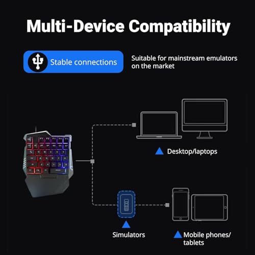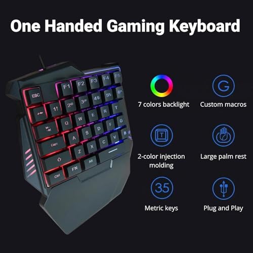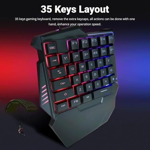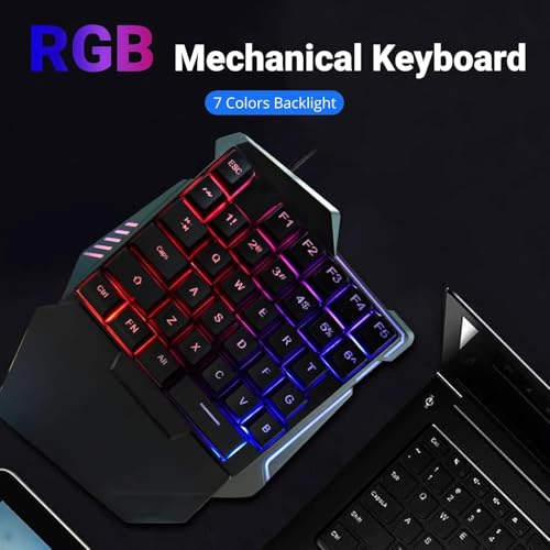 fashion mania - لوحة مفاتيح ميكانيكية للألعاب بيد واحدة، تحتوي على 35 مفتاح مع إضاءة خلفية ار جي بي وتصميم مريح مزود بمسند للمعصم ووصلة USB بسلكي