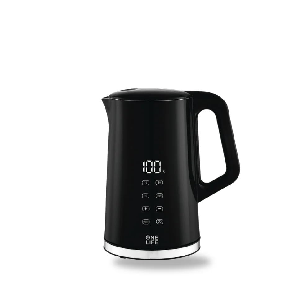 One Life - غلاية كهربائية رقمية بجدار مزدوج من الفولاذ مقاوم للصدأ وشاشة ليد وتحكم في درجة الحرارة من ون لايف، 1.7 ل، لون أسود