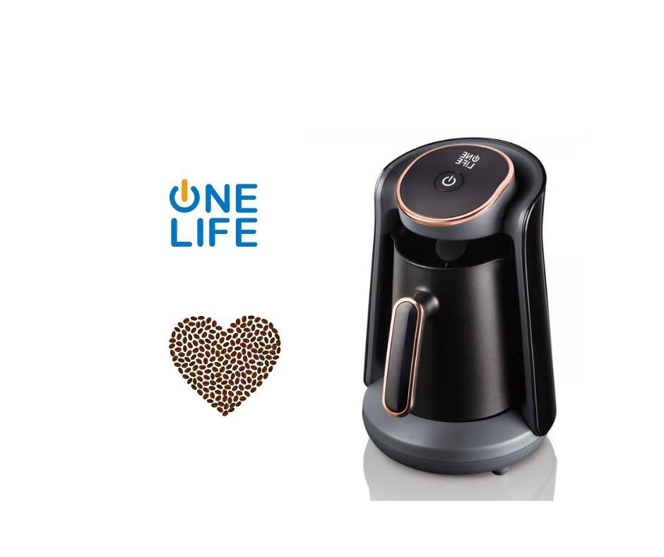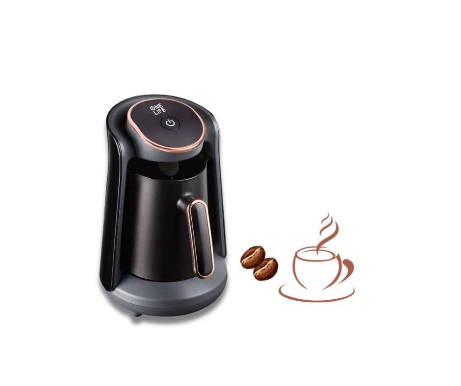 One Life - ماكينة تحضير القهوة التركية CP20G، 500 ملليلتر، 600 وات لتحضير1-4 أكواب بخاصية إغلاق تلقائي من ون لايف، (أسود وذهبي)