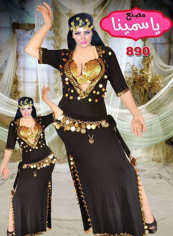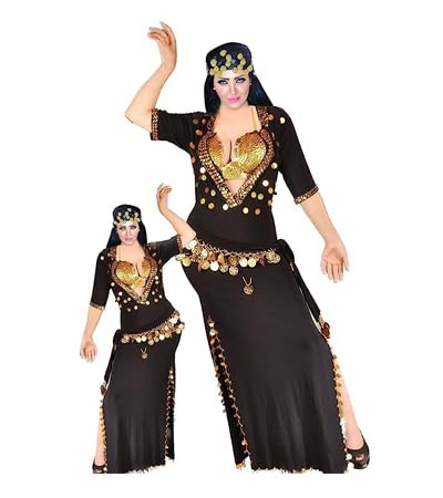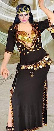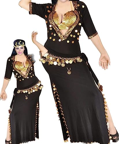 Generic - بدلة رقص من قطعة واحدة مع لؤلؤ ذهبي وحزام مناسب, أسود, One Size