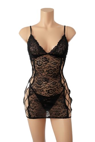 GAMAL SONS FOR ABAYA - لانجيري قميص دانتيل شفاف برباط من الجانبين وان سايز GAMAL SONS FOR ABAYA GS-907-51283-Parent