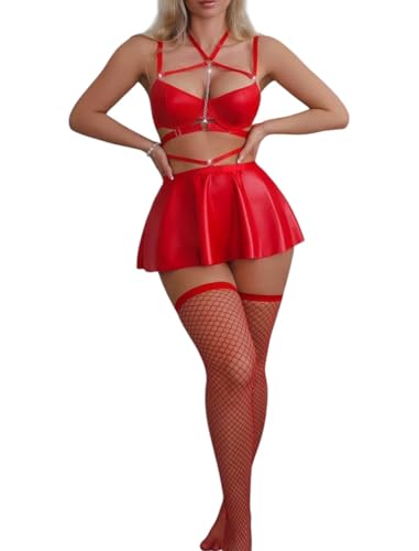 Generic - لانجري جريء بستايل جلدي وتصميم ضيّق ملفت، مقاس واحد One Size
