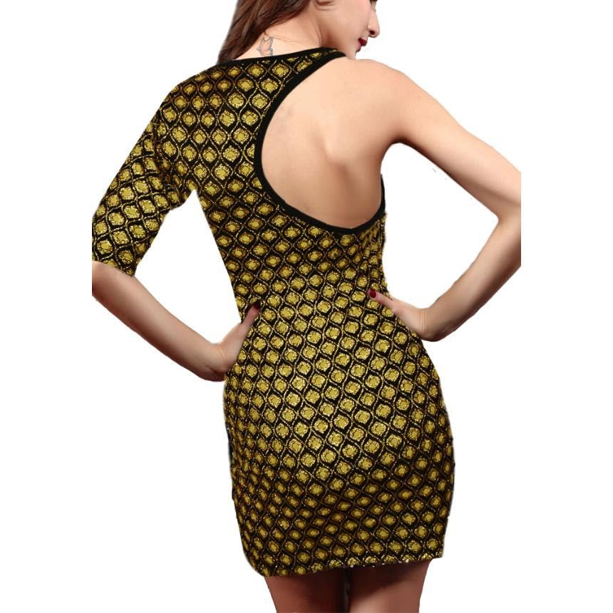 Generic - فستان قصير سوارية لامع بيزو بكم واحد ، للنساء