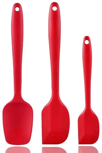 Generic - طقم ملاعق سباتولا سيليكون من 3 قطع، لون احمر، 7549، ضمان لمدة عام