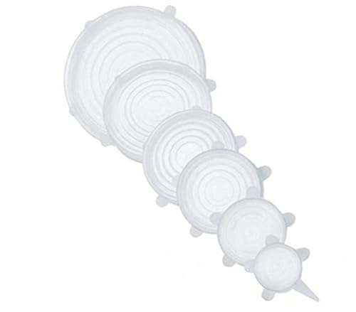 Spaceshoop - أغطية سيليكون قابلة للتمدد، أغطية تخزين طعام قابلة لإعادة الاستخدام، مجموعة أغطية لتغليف الطعام قابلة للتمدد لتناسب مختلف أحجام العلب والبولات والأطباق والأكواب وعلب الفواكه، 6 قطع 749