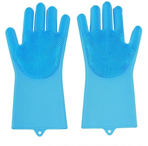 generic - زوج قفازات تنظيف سحرية من السيليكون المطاطي – للتنظيف وإزالة الغبار | غسل الأطباق | العناية بالحيوانات الأليفة وإزالة الشعر | تنظيف السيارة | قفازات معزولة للمطبخ – لون أزرق، طراز 2207