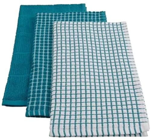 generic - طقم فوط مطبخ من 3 قطع بلون تركواز، ضمان لمدة عام واحد، 9989760
