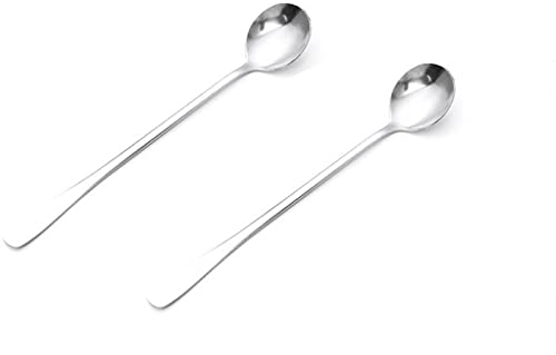 Generic - ملعقة ستانلس ستيل بمقبض طويل ضمان لمدة عام (مجموعة من قطعتين، لون فضي) 9988133