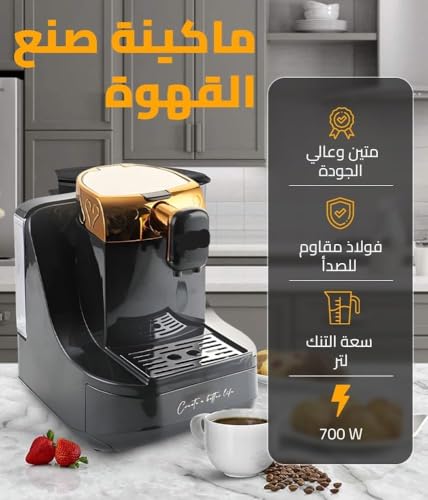 Generic - ماكينة تحضير قهوة تركية كهربائية ممتازة 700 وات مع خزان مياه قابل للفصل سعة 1.0 لتر وصينية تقطير 400 جرام متعدد الألوان ضمان عام